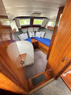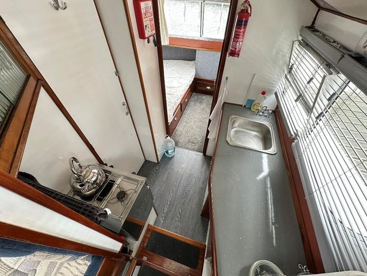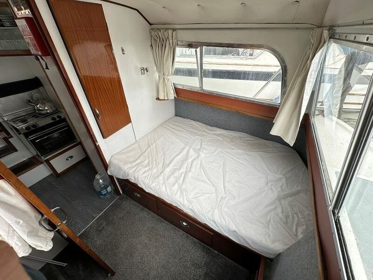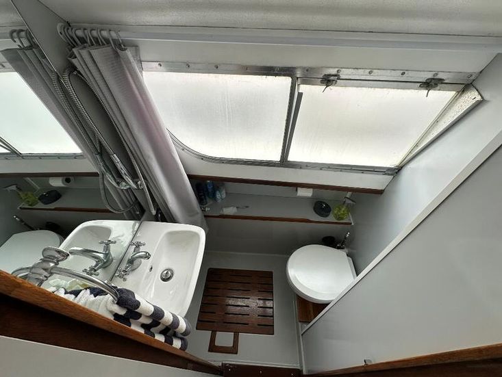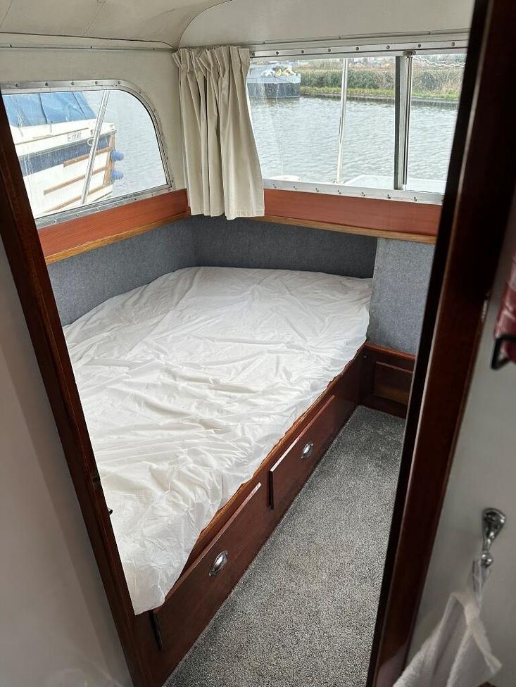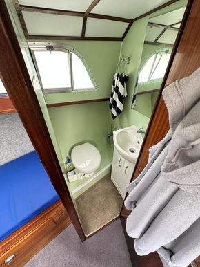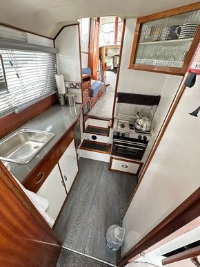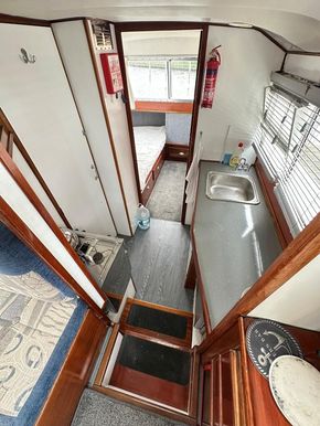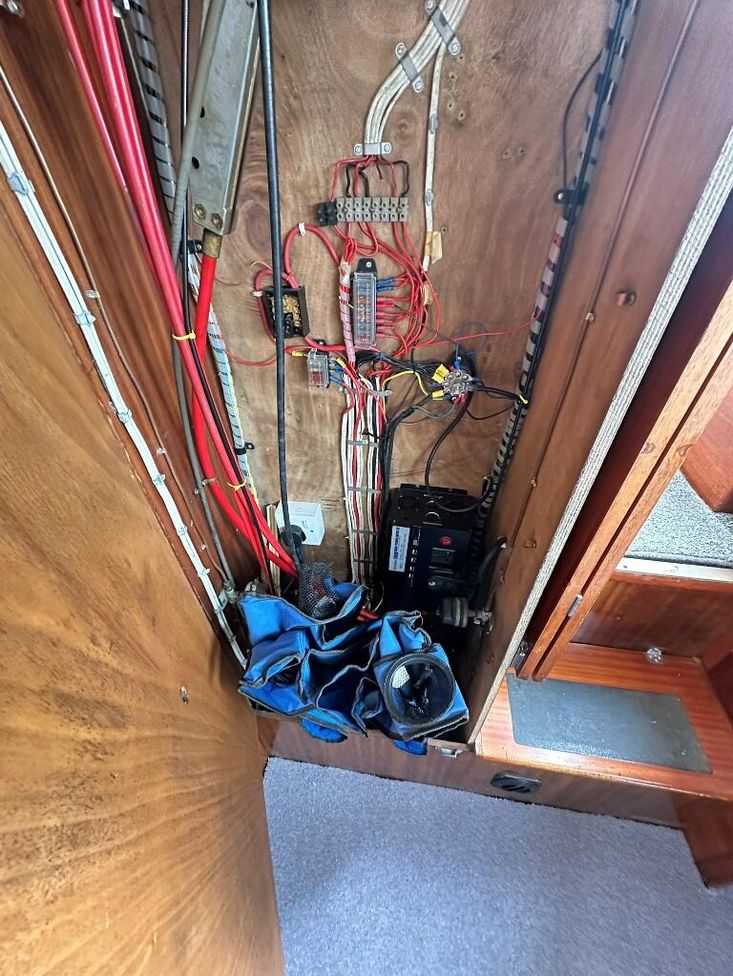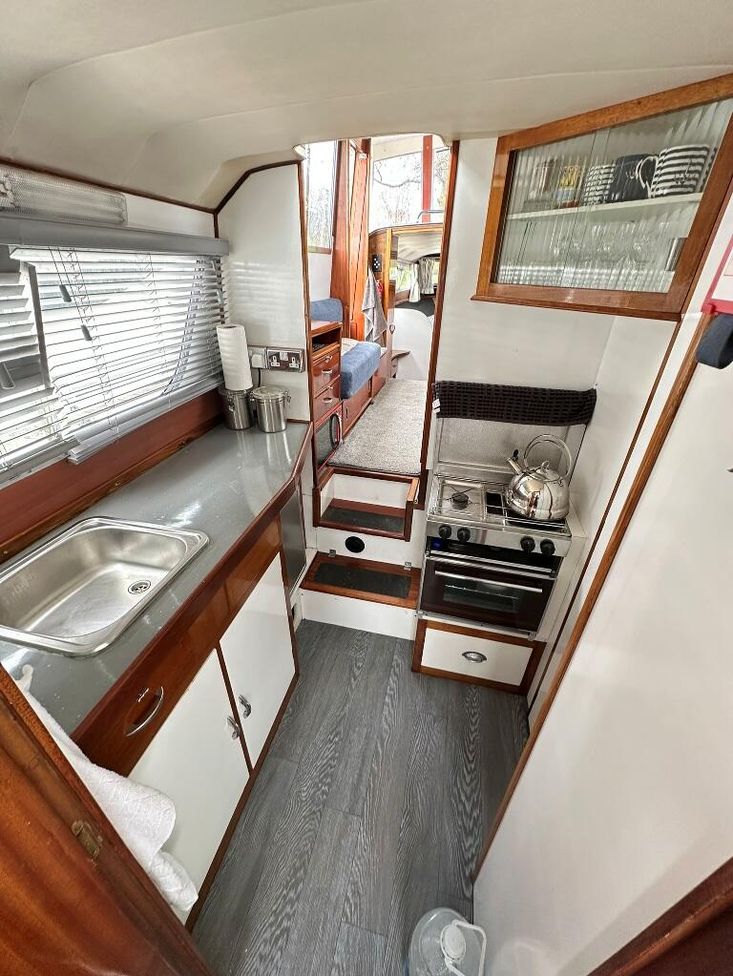 Fittings: Nav Lights, Spot Light, Windscreen wiper, 12v, wired for shorepower, 2000 watt inverter, Waeco battery charger, Cooker, Microwave, 12v fridge, Hot water via calorifier, 2 x Sea toilets (does have a holding tank but would need reconnecting), 13 kg propane gas,