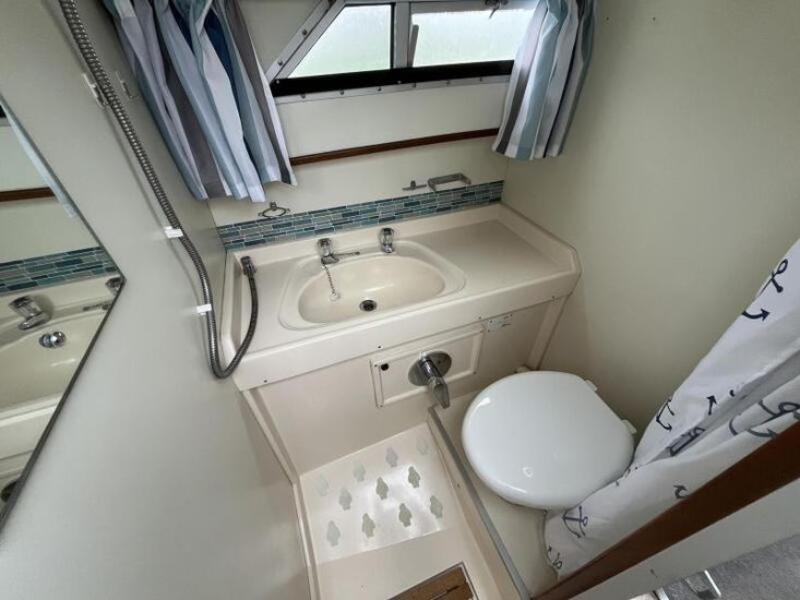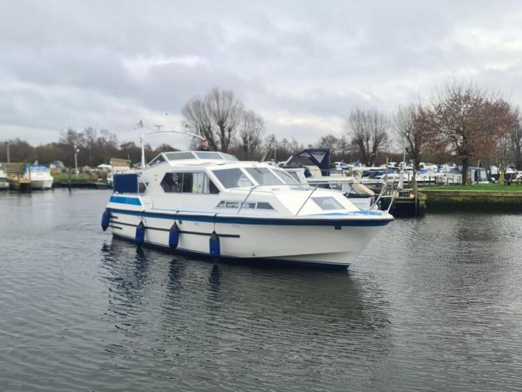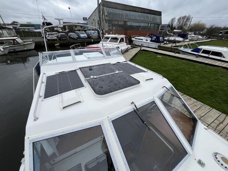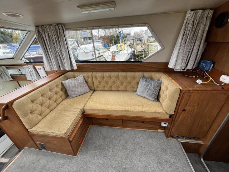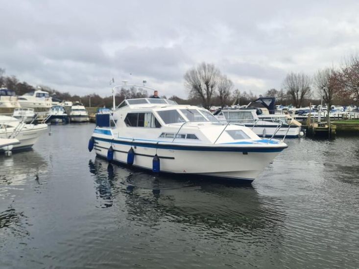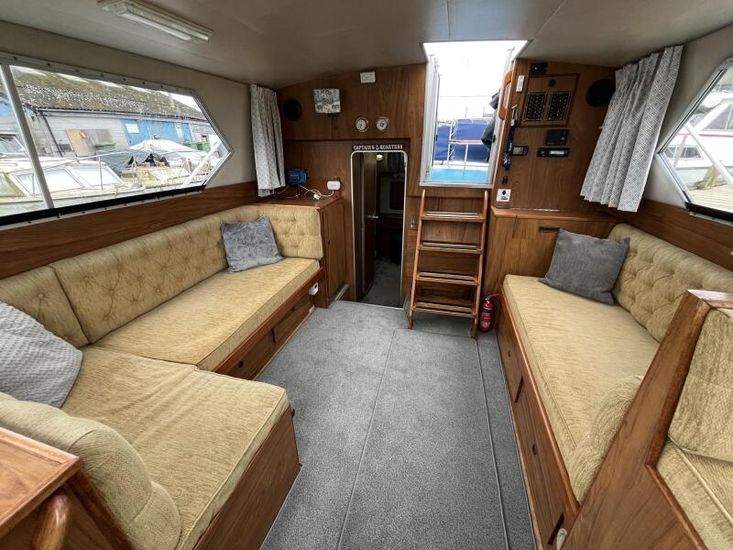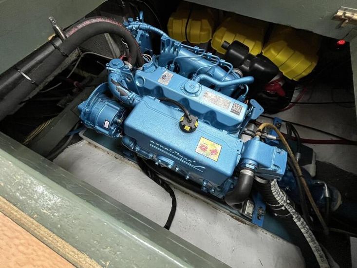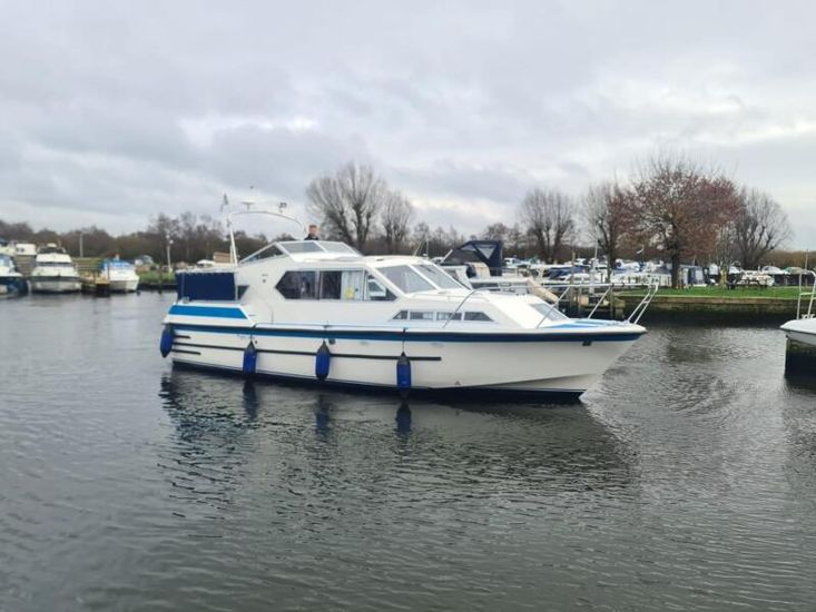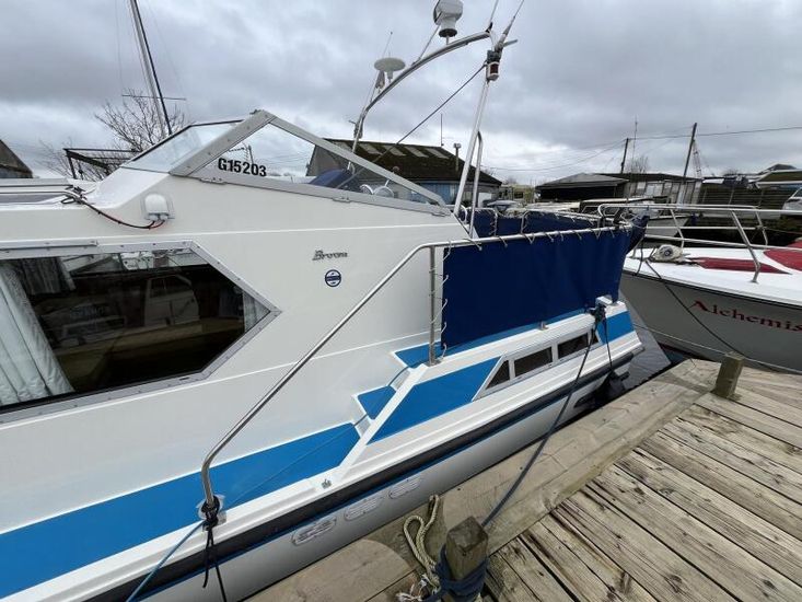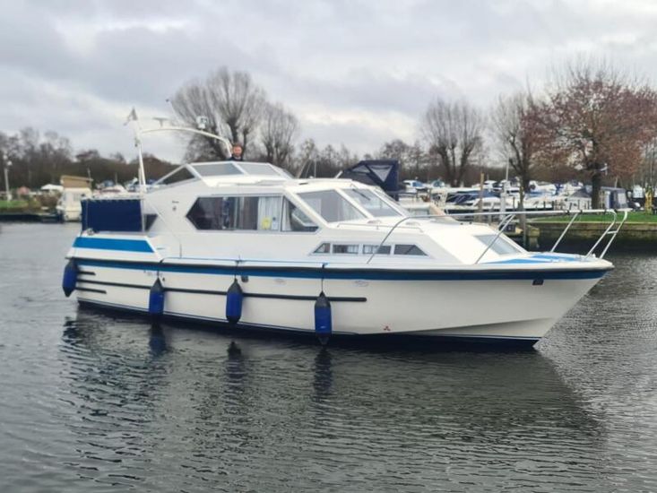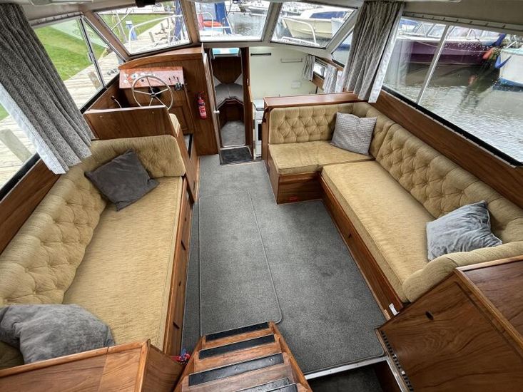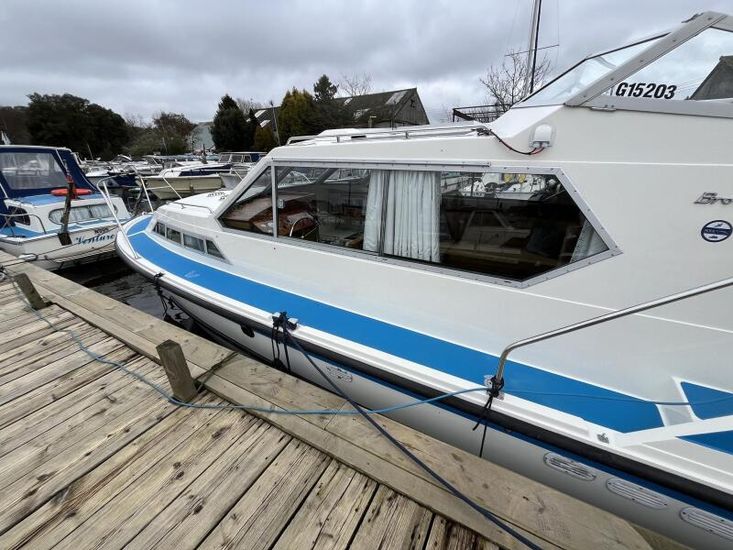 Broom 32 - 1987 - Powered by a Nanni N4.50 50hp diesel engine, fitted in 2022. Up to 7 berth accommodation over 2 cabins and saloon with 2 x toilet/shower compartments. Specification including bow thruster, shore power, battery charger, solar panels with charge controller, warm air heating, holding tank, calorifer. BSC 04/27. A lovely example of these spacious dual helm cruisers, benefitting from a recent new engine and presented in her original gelcoat. NYA Stock - Sold with 3 month engine & gearbox warranty