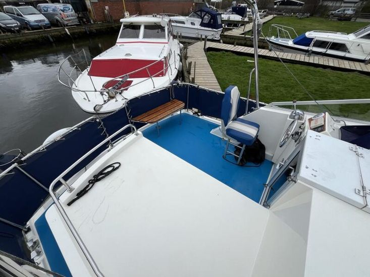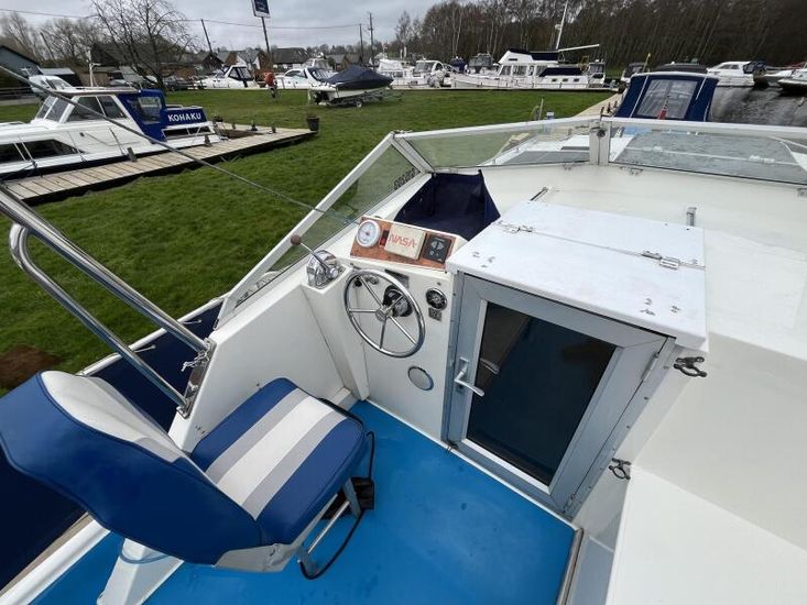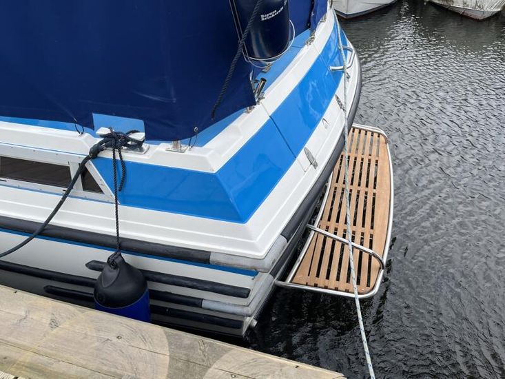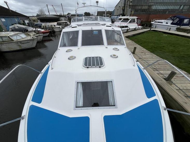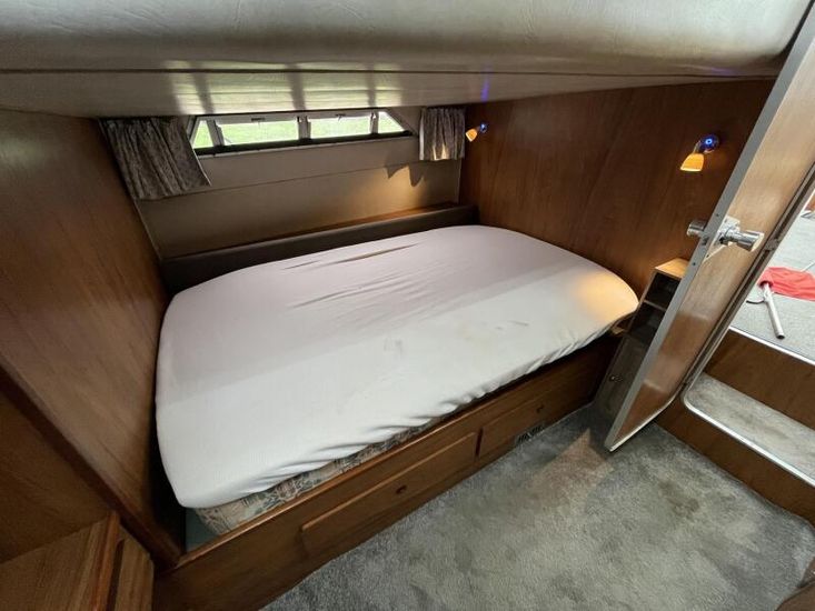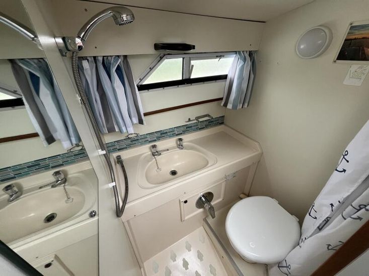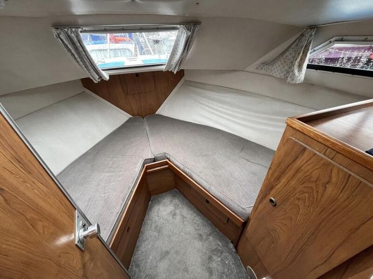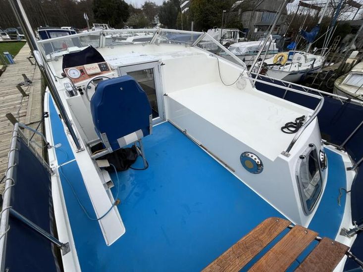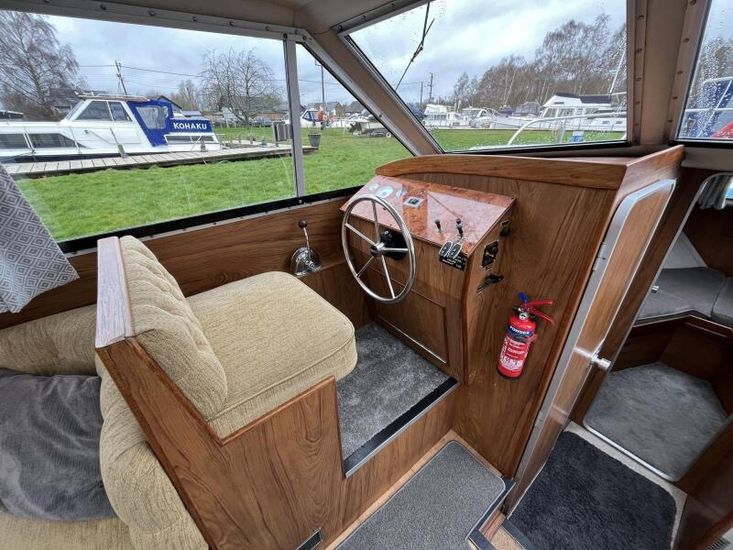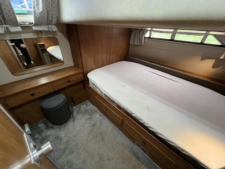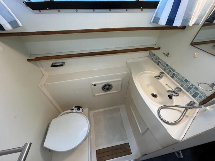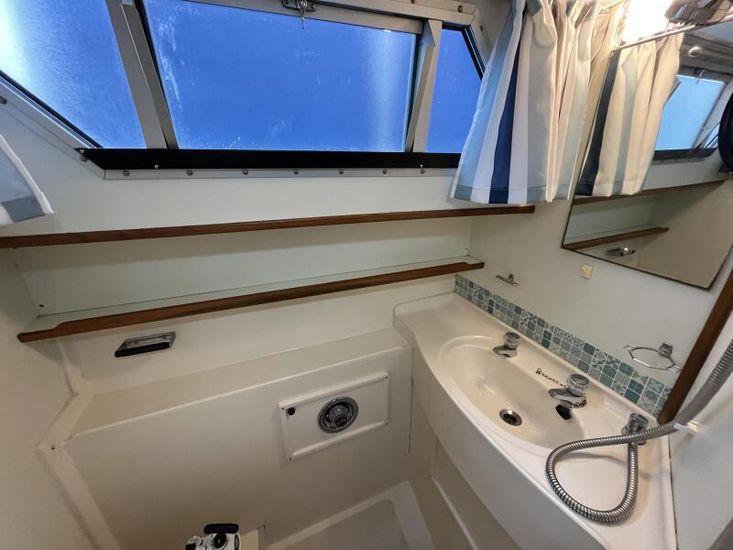 Broom 32 - 1987 - Powered by a Nanni N4.50 50hp diesel engine, fitted in 2022. Up to 7 berth accommodation over 2 cabins and saloon with 2 x toilet/shower compartments. Specification including bow thruster, shore power, battery charger, solar panels with charge controller, warm air heating, holding tank, calorifer. BSC 04/27. A lovely example of these spacious dual helm cruisers, benefitting from a recent new engine and presented in her original gelcoat. NYA Stock - Sold with 3 month engine & gearbox warranty