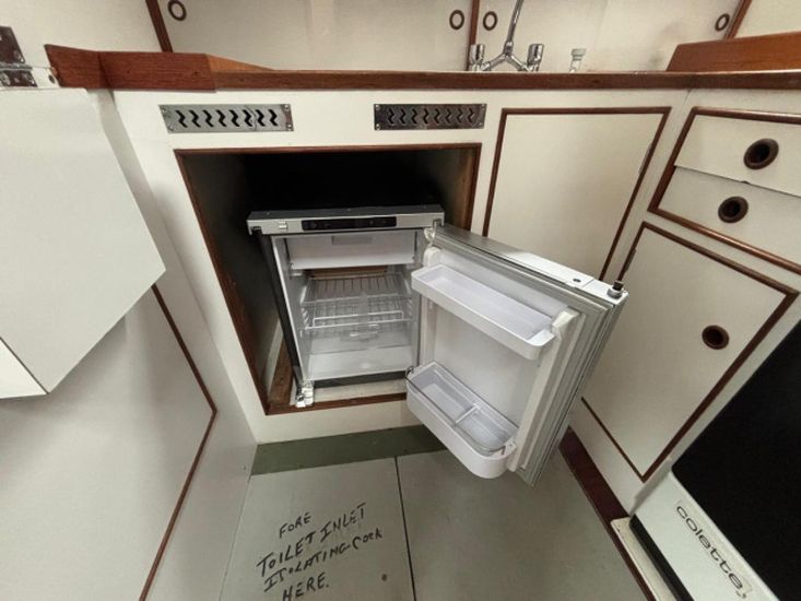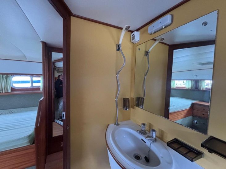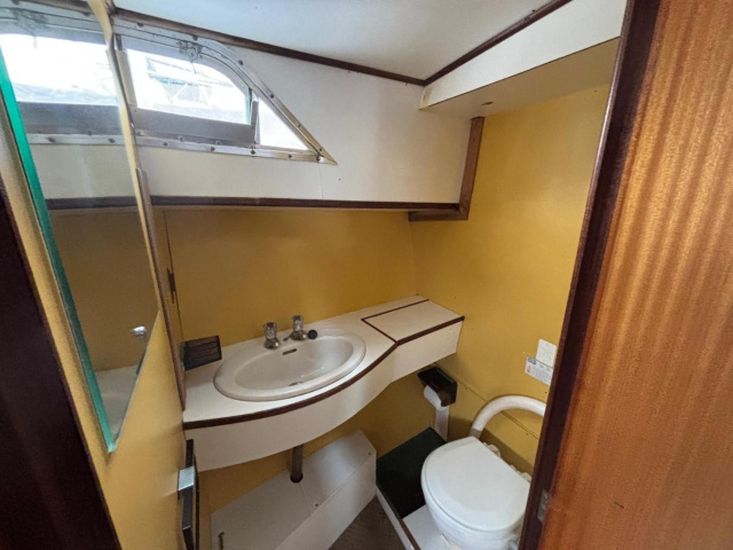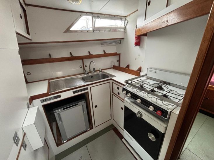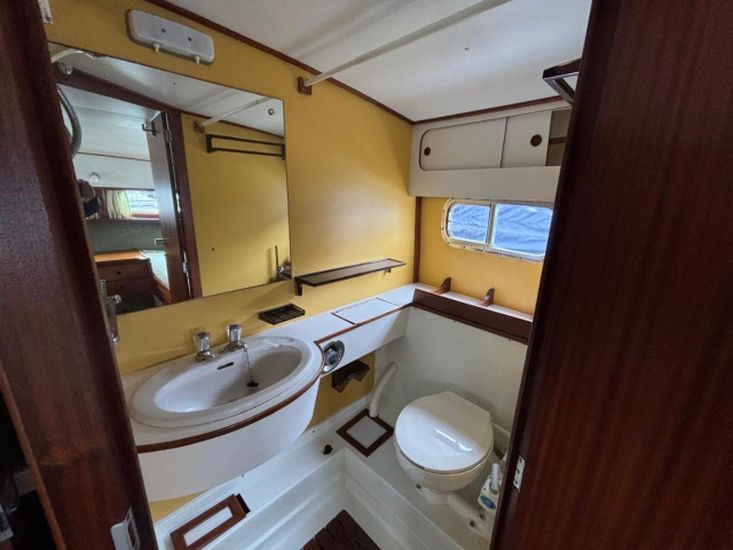 Her galley has a cooker with 3 burners, oven and grill. New refrigerator 2026. Pressurised hot and cold water supply to the sink. New domestic water pressure pump 2025. 2 new water Vetus plastic tanks 170l each fitted 2026. New hot water calorifier 2025. 2 separate heads compartments, each with marine toilet, wash basin and shower. Note - gas system certified and checked 2026.