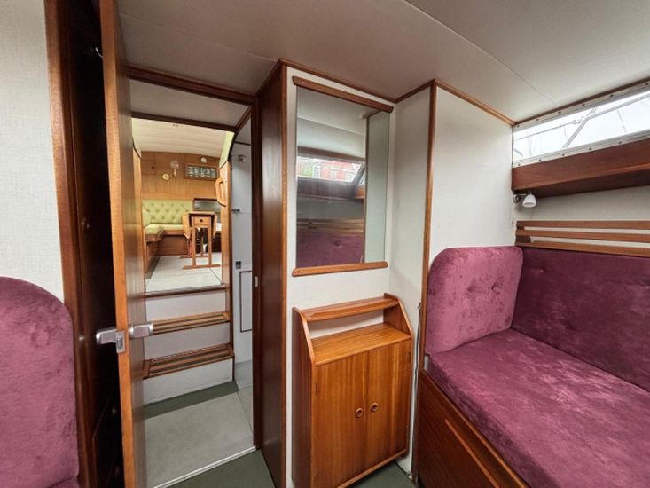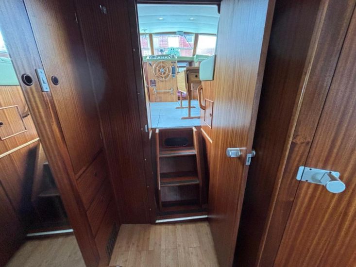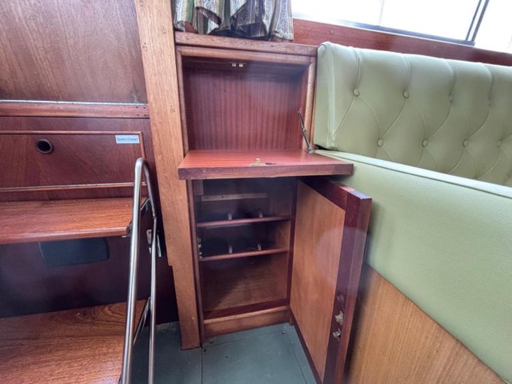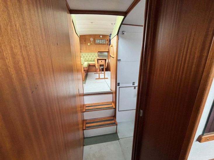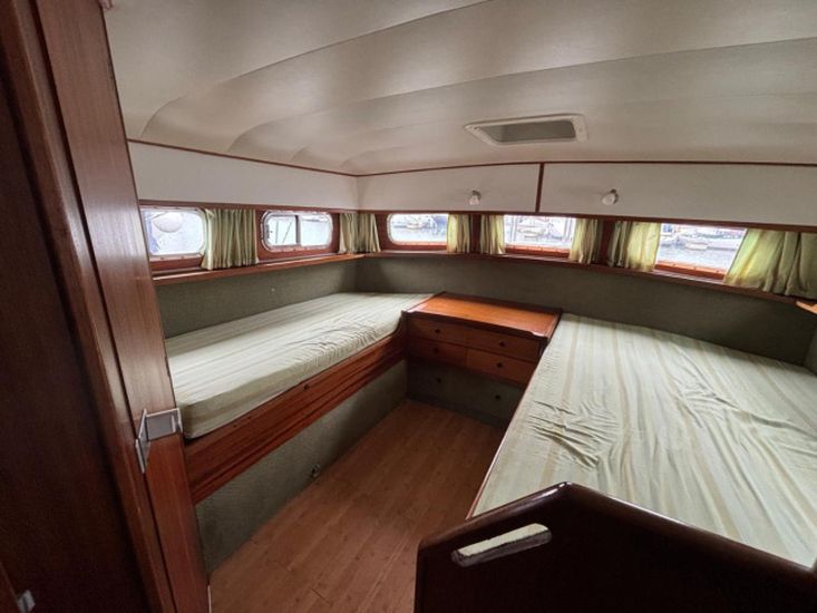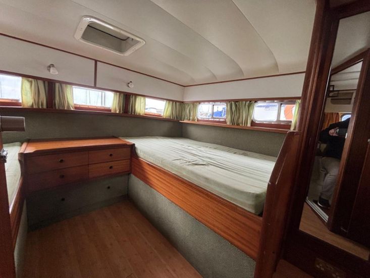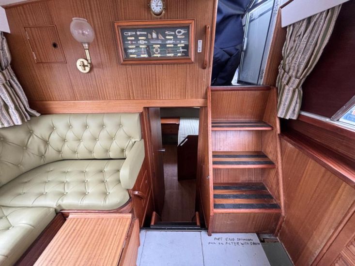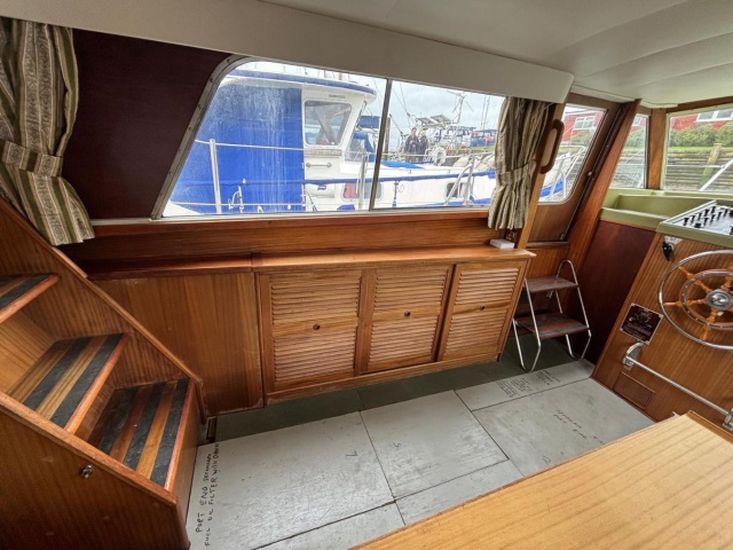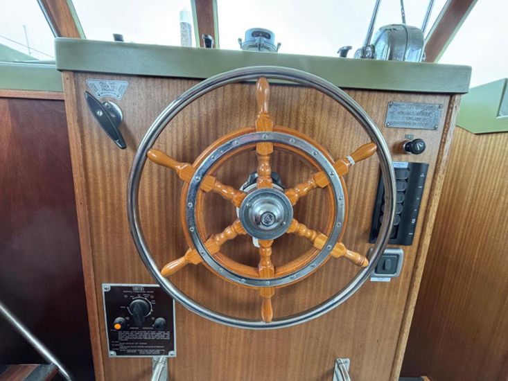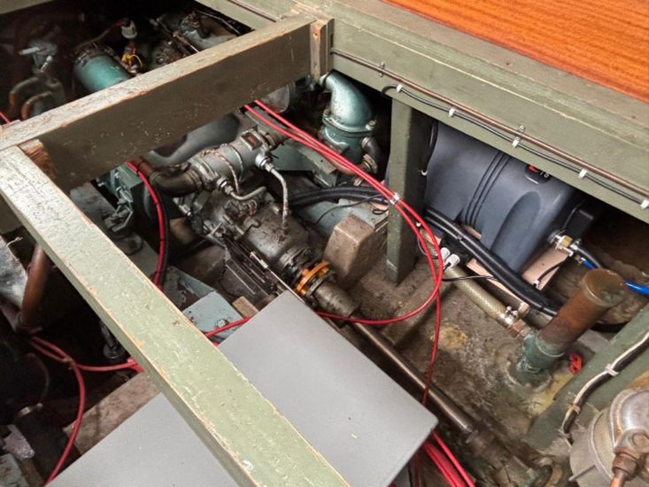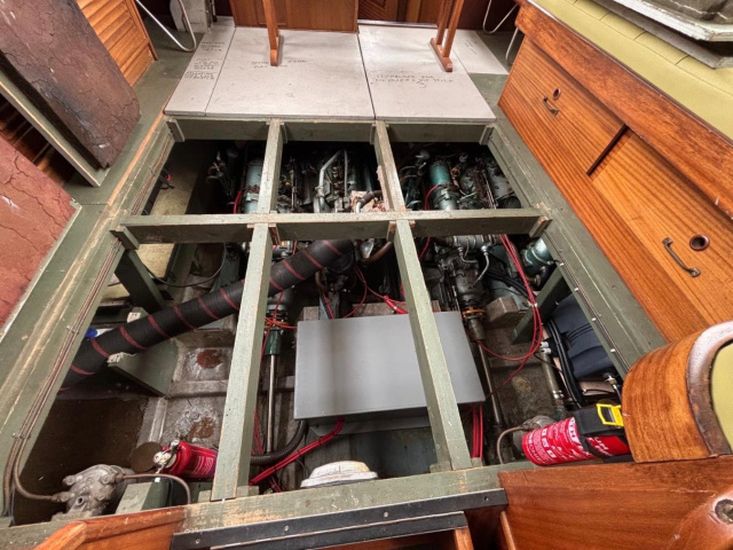 Twin 145hp turbo-charged Perkins 6.354 diesels (1977) with shaft drive to fixed 3 blade bronze propellers. Engines fully services August 2025. Stainless steel fuel tanks professionally cleaned June 2025. Max speed around 16 knots.
