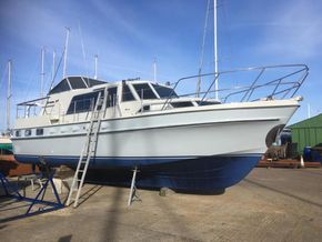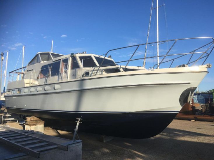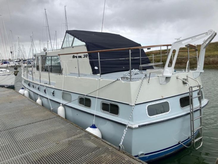 Broom Continental 37, 1977, Twin 145hp turbo-charged Perkins 6.354 diesels. This fine boat has been fully professionally refurbished over the past 2 years including topside re-spray, new saloon and forward cabin upholstery, water tanks, new flybridge cover, new batteries and charger, new chart plotter, fridge and much more! Insurance survey 10th March 2025! A fabulous opportunity to buy one of these every special boats.
