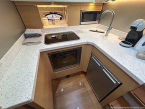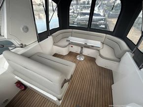 Aft cockpit consists of a full-width transom mounted bench seat, convertible helm and navigator's seat that provide comfortable seating for up to six, plenty of room for entertaining.
