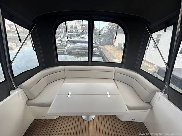 Large helm console with excellent all-round visibility and sight of engine instruments and navigational aids, the helm position and aft cockpit are covered with a 2-part canopy which is easily removed.
