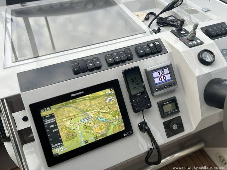 'Necessity' has been professionally maintained and boasts an impressive specification, including twin Volvo Penta D6-330 diesel inboard engines, bow and stern thrusters for effortless manoeuvring, a 4kW generator, Raymarine Axiom chartplotter, Garmin Vesper Cortex VHF with AIS, pop-up television, LED deck lighting, and much more making her equally suited to relaxed cruising or extended time aboard.
