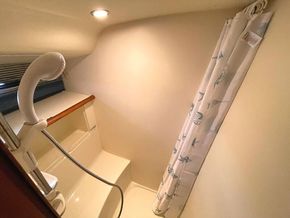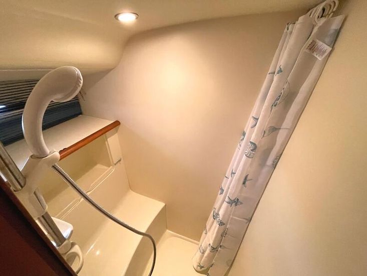 This 2001 Broom 42 is a classic blend of British craftsmanship and confident performance, powered by twin Yanmar 6LP-STE 300hp diesel engines on shafts for smooth, assured cruising. Designed with both coastal passages and inland adventures in mind, she offers six-berth accommodation with two well-appointed heads compartments and separate showers, delivering comfort that feels more boutique retreat than floating cabin. Warm air heating and air conditioning keep the climate just right in every season, while shore power with battery charger, a 4kW generator, and a holding tank with diverter ensure practical independence wherever you choose to roam.