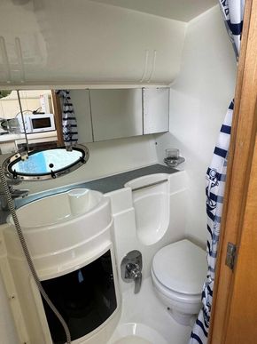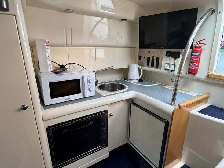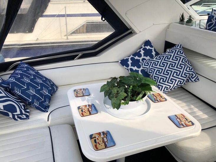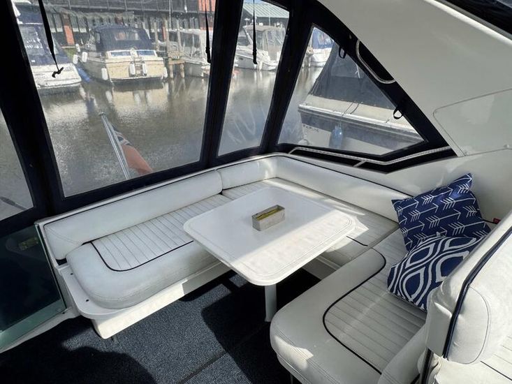 Sleek attractive 4 berth sports cruiser with 2 tier aft cockpit and spacious interior. The bow thruster makes it easy to handle in close quarters and the larger fitted Volvo Penta KAD 32 diesel engines give it fast acceleration on the coast. Internally the layout is well planned with good headroom. Grey Goose is in lovely condition and ready to be used.