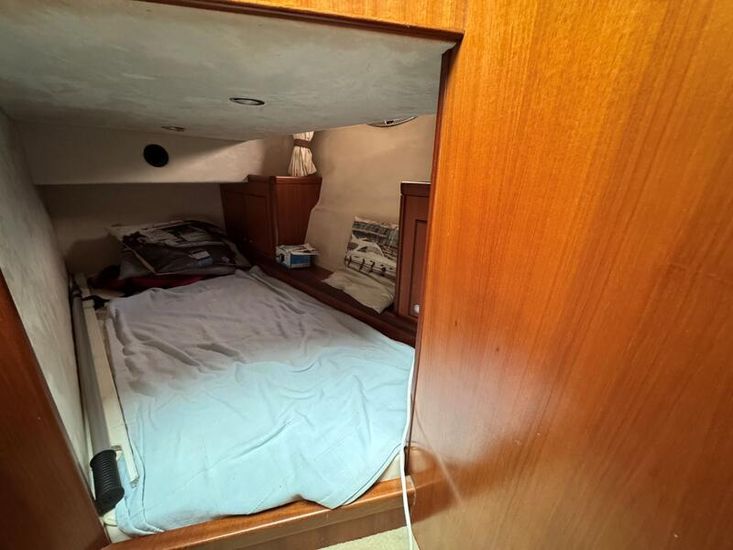 Internally it is a very comfortable layout, fitted to a high standard, offering an open plan saloon and galley, two private cabins, separate heads and shower room and an extra large single berth.