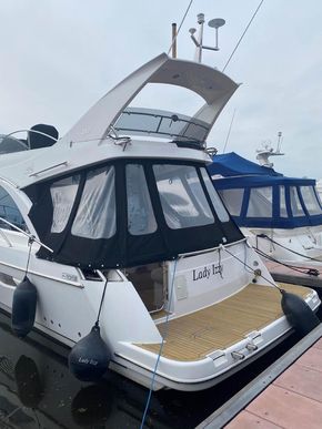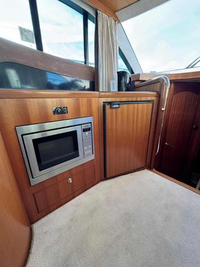 Not only is the Galeon 390 flybridge a stunning looking motor cruiser but provides plenty of space for family and friends. Externally the large cockpit and bridge extend the living areas in fairer weather. Fitted with the larger Volvo Penta D6 engines it is certainly a capable offshore cruiser.
